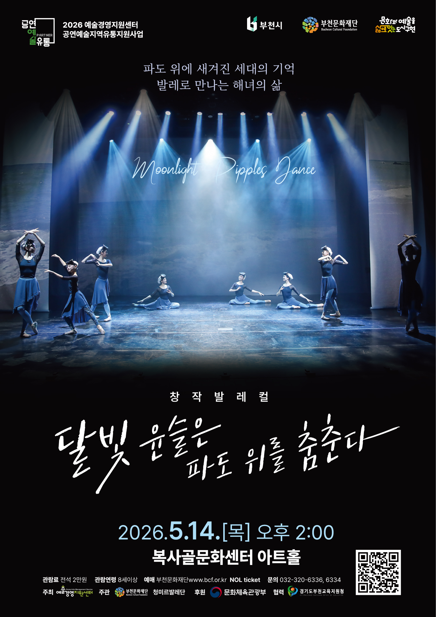 부천문화재단에서 5월 공연 창작발레컬 <달빛 윤슬은 파도 위를 춤춘다>와 연극 <미리내 삼대>를 다음과 같이 선보입니다.