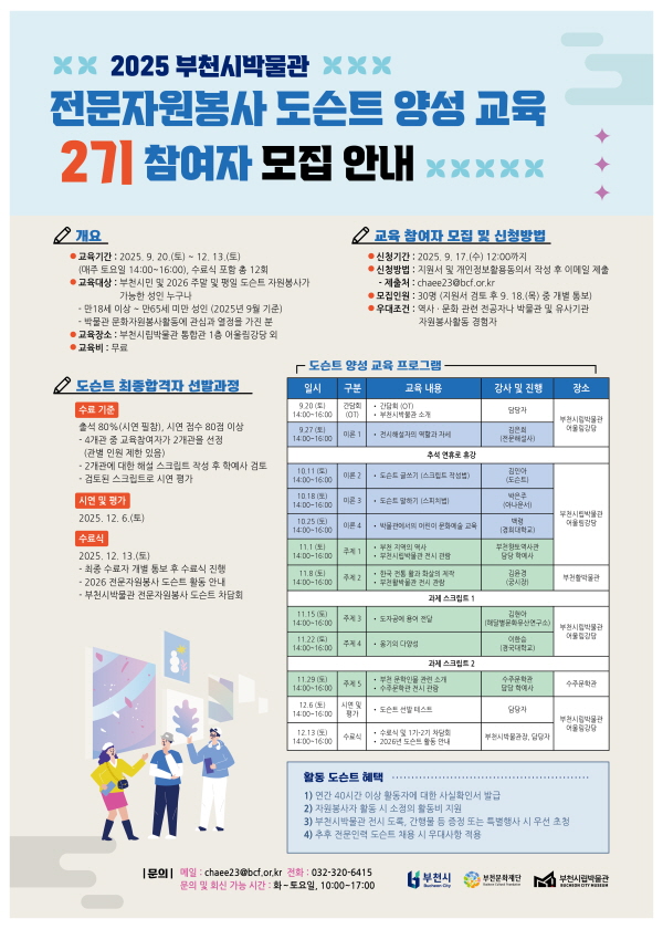 부천시박물관, 전문자원봉사 도슨트 양성교육 2기 모집