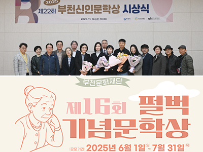 ※2026년 기준 사업소개 문학상 지난해 사업성과 제21회 부천신인문학상 - 112명, 288편 접수 제16회 펄벅기념문학상 - - 240명, 324편 접수 부천문인의 날 - 200명 참여 사업개요 부천신인문학상 목적 부천지역 신인문인 발굴 소개 시, 소설, 아동문학, 수필, 극 총 5개 부문 신인 작가 공모 펄벅기념문학상 목적 퓰리처상과 노벨문학상을 수상한 펄 벅의 문학적 업적 계승 소개 펄 벅의 문학과 생애를 주제로, 청소년 및 청년 대상 전국 단위 문학작품 공모전 올해 사업방향 부천신인문학상 대상 부천 거주·재직·재학 및 과거 3년 이상 연고자 등 달라진 점 부천 관내 소재 기관 문학 프로그램 수료자 등 공모대상 확대 펄벅기념문학상 대상 전국 초·중·고등학생 및 청년(1998년 포함 및 이후 출생, 학교 밖 청소년 포함) 공모 부문 : 운문(시), 산문(소설, 수필 등) 달라진 점 공모 주제 : 펄 벅의 문학과 생애에 담긴 ‘인권’과 '다문화' 주요내용 부천신인문학상 공고기간 2026년 5월 12일 ~ 7월 30일 접수기간 2026년 7월 1일 ~ 30일 선발규모 총 5개 부문 각 1명 펄벅기념문학상 공고기간 2026년 6월 1일 ~ 7월 31일 접수기간 2026년 6월 1일 ~ 7월 31일 선발규모 총 30명(초등부, 중등부, 고등부, 청년부) 지원/선발 기준 부천신인문학상 지원내용 시상금 총 1,100만원 펄벅기념문학상 지원내용 입상 내역에 따라 시상금 차등 지급 문의 부천신인문학상 담당자 032-320-6435(수주문학관) 펄벅기념문학상 담당자 032-320-6442(부천펄벅기념관)