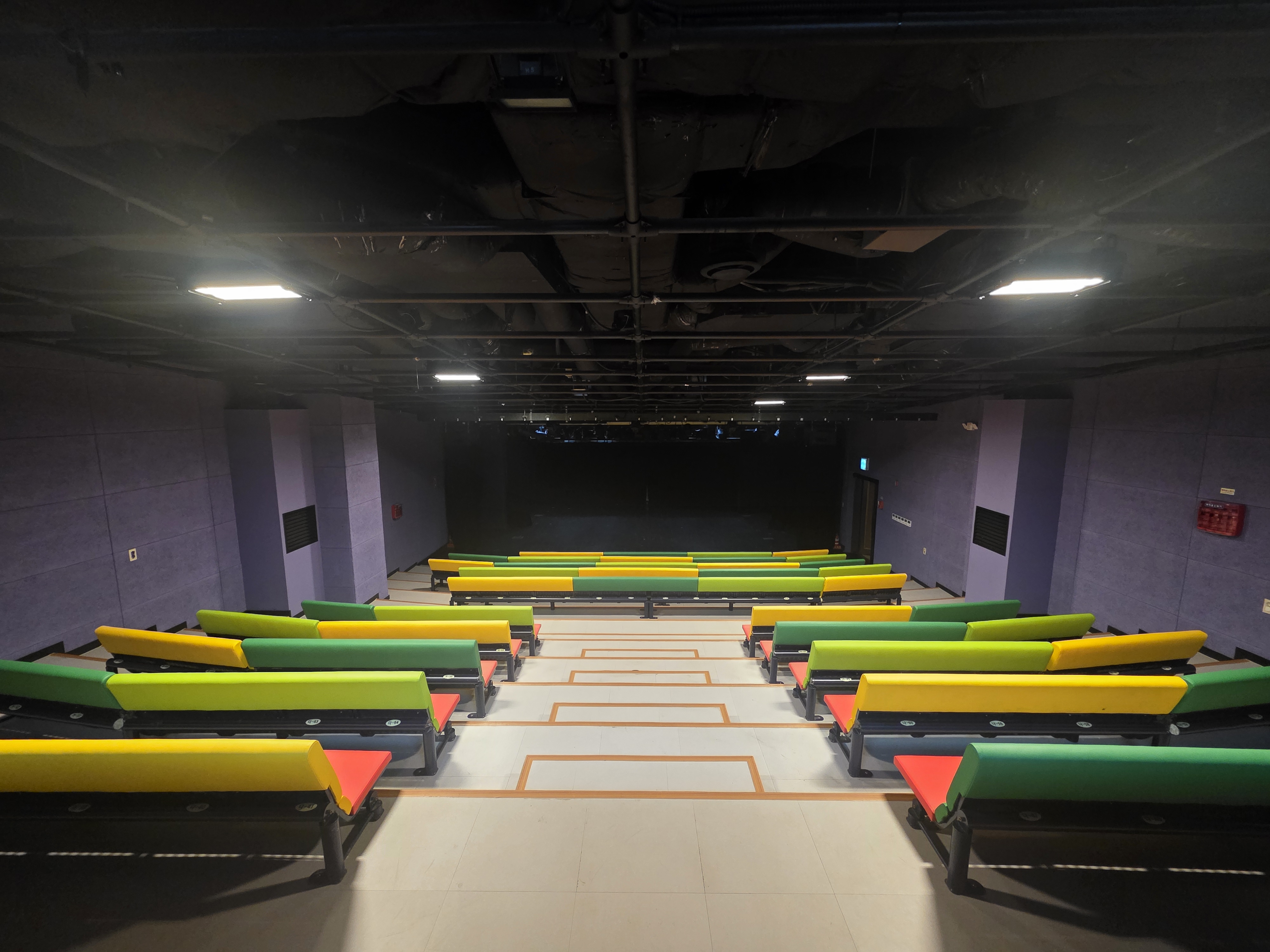 부천시민회관대공연장 부천시민회관소공연장 복사골문화센터아트홀 판타지아극장 오정아트홀 판타지아극장 공간안내 위치 복사골문화센터 지상 1층 객석수 136석(휠체어석 2석 포함) 무대면적 98㎡ 객석바닥면적 114㎡ 무대기구수 구동식 2개 문의 032)320-6334 운영시간 09시 ~22시 (월요일, 설· 추석연휴 휴관) 복사골문화센터 1층 위치한 판타지아극장은 136석 규모의 어린이 전용 공연장입니다. 판타지아극장은 부천문화재단 상설 어린이 공연 진행을 위하여 외부 대관은 받고 있지 않습니다. 대관 신청서 다운로드 운영지침 다운로드 무대기술자료 무대기술자료 다운로드 조명회로도 다운로드 바로보기 극장기술정보 다운로드 바로보기 공연장 안전관리 안내문 다운로드 바로보기 평면도 다운로드 바로보기 공연장사용 유의사항 다운로드 바로보기 분장실 사용에 관한 유의사항 다운로드 바로보기 무대기술자료 - 무대기술자료, 조명회로도, 극장기술정보, 공연장 안전관리 안내문, 평면도, 공연장사용 유의사항, 단면도, 분장실 사용에 관한 유의사항으로 구성 좌석배치도 ※ 좌석을 선택하시면 무대시각선을 보실 수 있습니다. 촬영된 시각선은 실제 눈으로 보는것과 약간의 차이가 있을 수 있습니다. 좌석배치도 상세 이미지 닫기