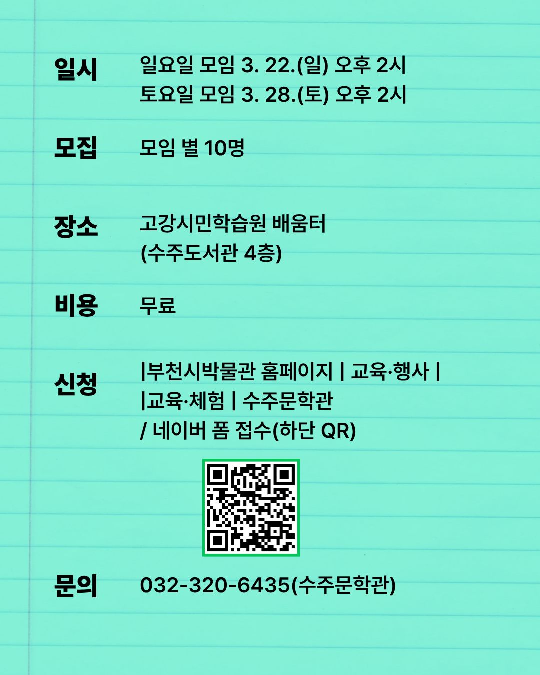 ☐ 문 의 : 032-320-6435 (수주문학관)