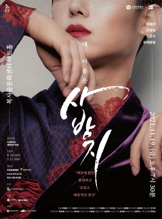 2025121520211119공연종료 창극 <내 이름은 사방지> 기간 2021-11-19 장소 복사골문화센터아트홀 시간 80(분) 대상 14세이상 주최 (재)부천문화재단, 제이유(JU)창극발전소 문의 032-320-6336 상세정보 기타정보 목록
