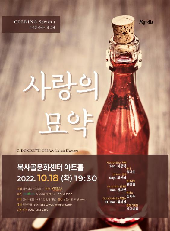 2025121520221018공연종료 사랑의묘약 기간 2022-10-18 장소 복사골문화센터아트홀 시간 90(분) 대상 7세이상 문의 0507-1373-3398 상세정보 기타정보 목록