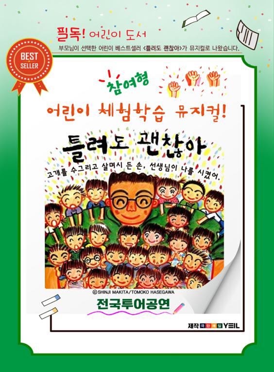 2025121520230815공연종료 어린이 체험학습 뮤지컬 <틀려도 괜찮아> 기간 2023-08-15 장소 부천시민회관 대공연장 시간 65(분) 대상 24개월 이상 주최 극단예일 문의 02-555-0822 상세정보 기타정보 목록