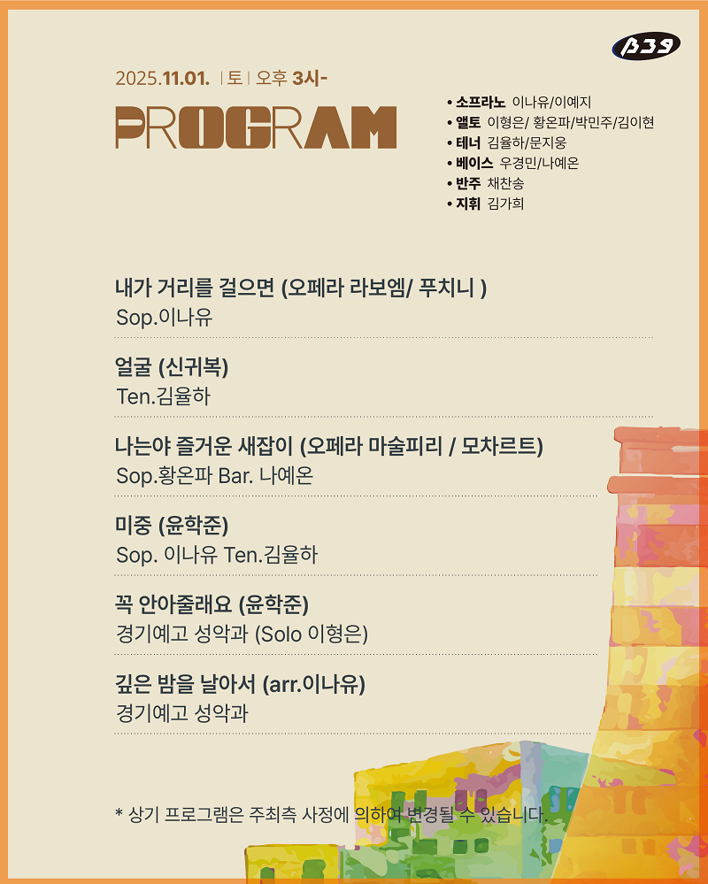 ※ 우천 시 일정이 변동될 수 있습니다. 부천문화재단 및 아트벙커 인스타그램의 소식을 참고해주세요.