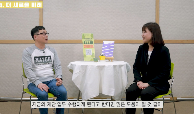 성유진 님은 사회 첫발을 내딛게 된 재단에서 기획과 홍보라는 업무의 어려움과 재미를 알아가고 있었습니다. 최용호 선생님은 사회 초년생이 겪을 수 있는 어려움과 고민에 대해 본인의 경험을 곁들여 말씀해 주셨어요. 혼자 사는 세상이 아니라는 선생님의 말씀이 깊이 와닿습니다. 따스한 마음이 느껴지는 선생님의 말씀은 영상으로 확인해 주세요.