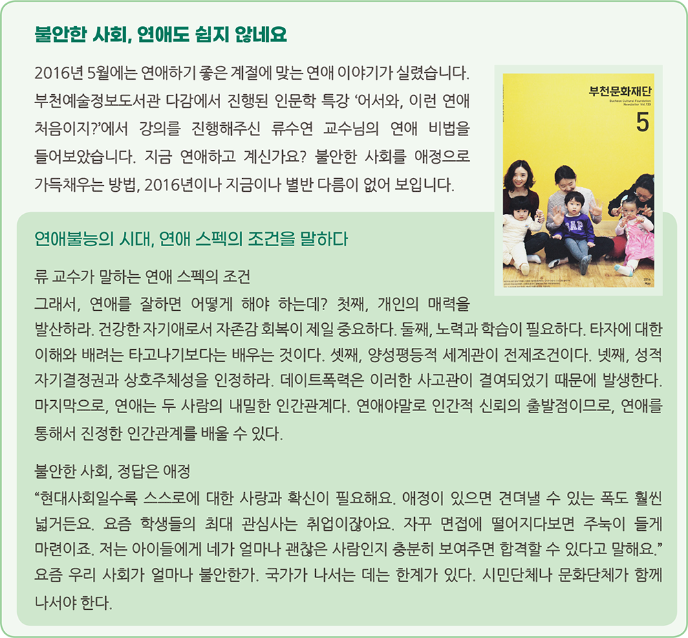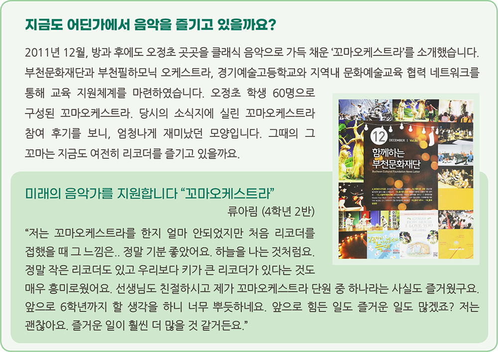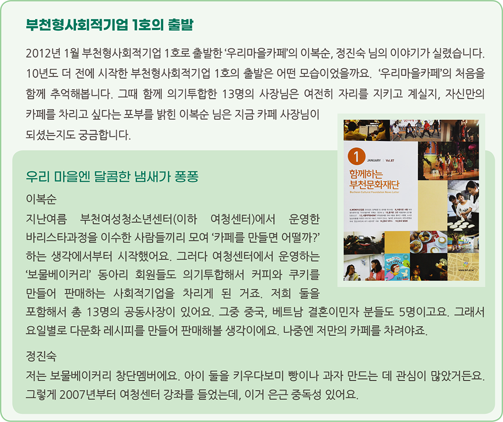 여러분과 200번을 함께해오는 동안 문화집은 다양한 분야의 사람들을 만났습니다. 걸어온 시간이 긴 만큼 부천의 곳곳을 다채로운 색으로 채워간 사람들. 그들이 꿈꾸었던 부천의 시간은 어떤 것이었는지, 그 꿈은 지금 어떻게 이루어졌는지, 귀 기울여 주세요. 이전의 이야기들 가운데 부천의 다양한 모습에 대한 시민들의 이야기를 소개합니다.