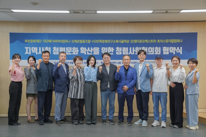 이번 협약은 지역 문화예술계와 협력업체 등 민간 부문과의 청렴 파트너십을 확대하고, 지역사회 전반에 청렴 문화를 확산하기 위해 마련됐다. 행사에는 부천문화재단 임직원과 청렴사회협의회 협약기관 관계자 등 16명이 참석했다.
