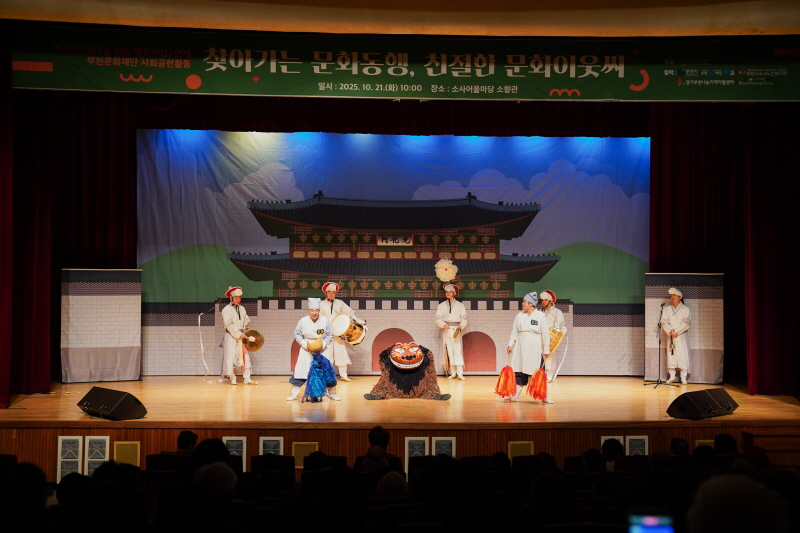 이번 행사는 10월 21일 부천 소사어울마당 소향관에서 열렸으며, 부천의 창작연희단체 ‘연희점추리’가 선보이는 퓨전 국악 공연으로 약 250명의 어르신들에게 다채로운 문화 체험의 시간을 선사했다.