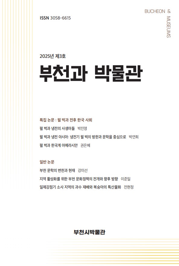 <부천과 박물관>은 부천시박물관과 관련한 학술 연구를 담은 정기 간행물로, 2023년 창간 이후 매년 발행하고 있다. 제3호는 부천펄벅기념관에서 열린 펄 벅 국제심포지엄의 국내 개최와 연계해 ‘펄 벅과 전후 한국사회’를 주제로 한 특집 논문 3편과, 부천의 문학·문화정책·특산물 관련 일반 논문 3편을 함께 수록했다.