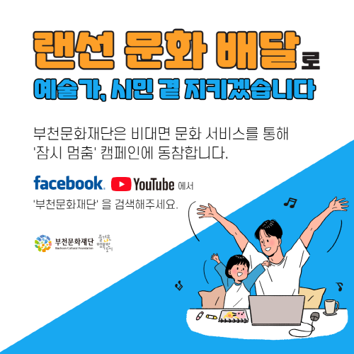 부천문화재단(이하 재단)이 비대면 문화 서비스를 통해 신종 코로나바이러스 감염증(코로나19)으로 어려움을 겪는 지역 예술인과 시민에 문화로 힘을 보탠다.