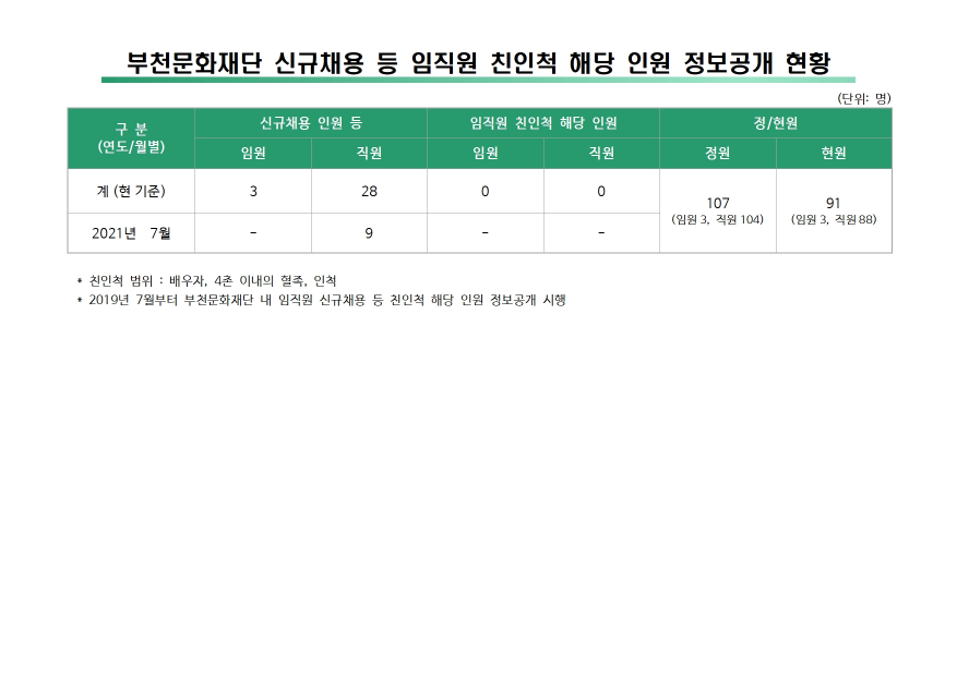 부천문화재단 신규채용 등 임직원 친인척 해당 인원 정보공개 현황(2021.7월) 구분 작성자 작성일 2021.07.06 조회수 파일 목록 이전 글 부천문화재단 신규채용 등 임직원 친인척 해당 인원 정보공개 현황(2021.6월) 부천문화재단 신규채용 등 임직원 친인척 해당 인원 정보공개 현황(2021.8월) 다음글
