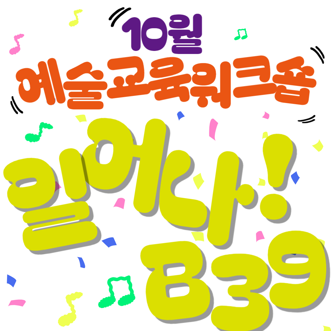 마감 10월 어린이 예술교육 워크숍 <일어나! B39> 운영일자 2024-10-05 ~ 2024-10-05 모집인원 20 신청인원 0 장소 부천아트벙커B39 소각동 1층 예술실험실 비스킷(Bsqit) 참가비 무료 강사명 송지원 연령 초등 1~2학년(만 7세, 2017년생 ~ 만 8세, 2016년생) 부천시 거주 어린이 문의 032-321-3901 첨부파일 목록