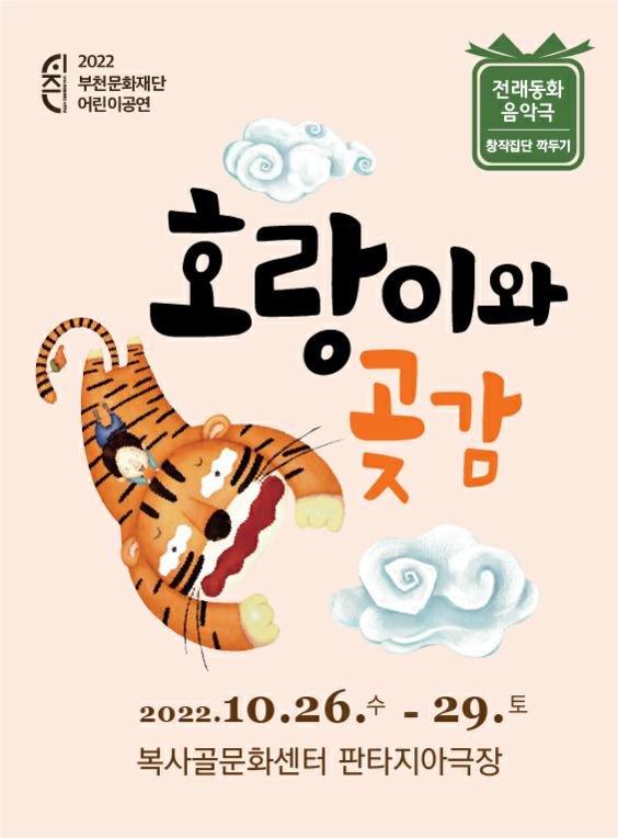 2025121620221026공연종료 전래동화음악극 <호랑이와 곶감> 기간 2022-10-26 ~ 2022-10-29 장소 판타지아극장 시간 60분 대상 24개월이상 관람가능 주최 (재)부천문화재단, 창작집단깍두기 문의 032-320-6334 상세정보 기타정보 목록