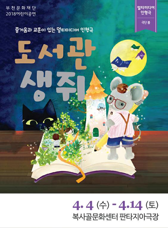 2025121620180405공연종료 도서관 생쥐 기간 2018-04-05 ~ 2018-04-14 장소 판타지아극장 시간 50(분) 대상 24개월이상 주최 (재)부천문화재단 문의 032-320-6377 상세정보 기타정보 목록