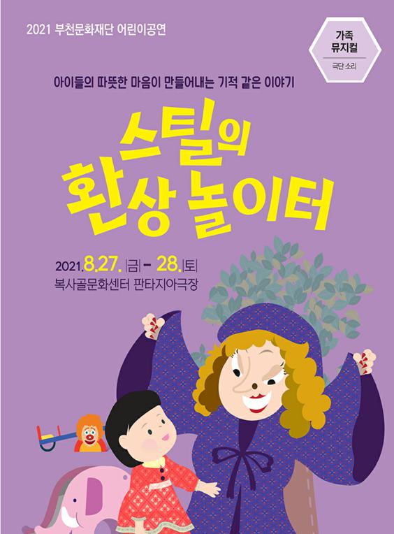 2025121620210827공연종료 가족 뮤지컬<스틸의 환상 놀이터> 기간 2021-08-27 ~ 2021-08-28 장소 판타지아극장 시간 50(분) 대상 24개월이상 문의 032-320-6334 상세정보 기타정보 목록